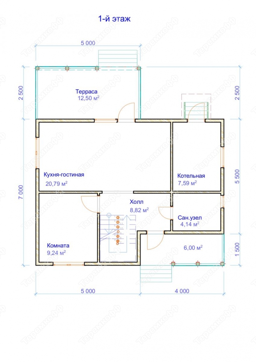 | Лестница | Одномаршевая, без перил | Двухмаршевая, с перилами и ограждением. | Двухмаршевая, с перилами и ограждением. | Двухмаршевая, с перилами и ограждением. |