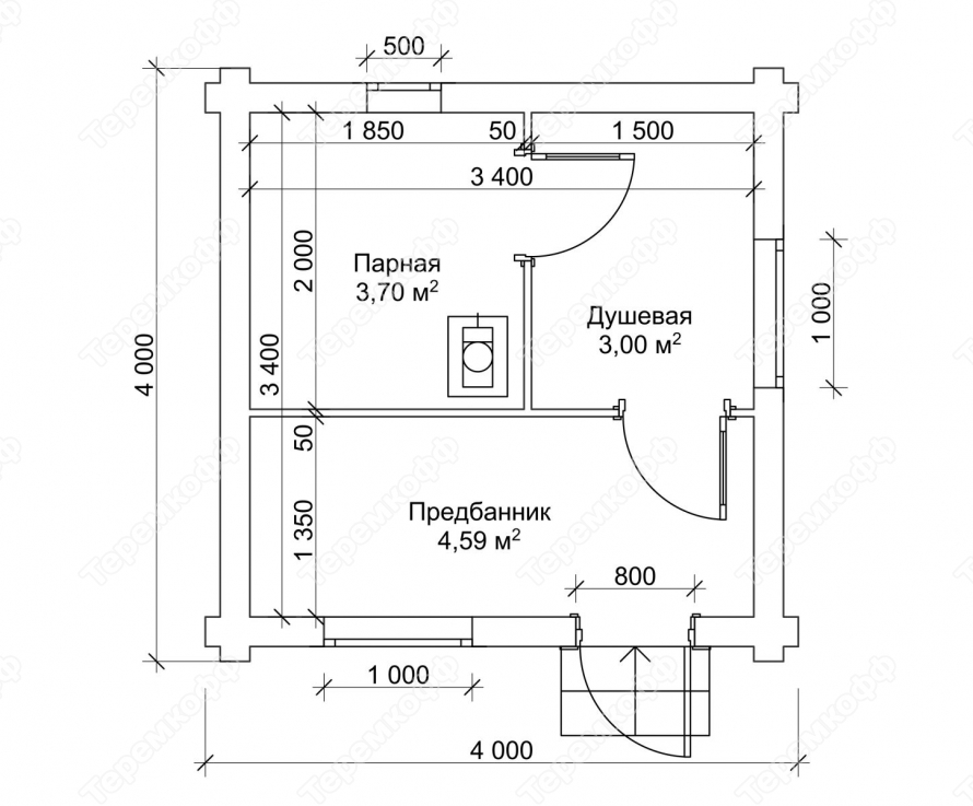 | Окна | Деревянные 500х1000мм – 2 шт., 500х500мм – 1 шт. | |