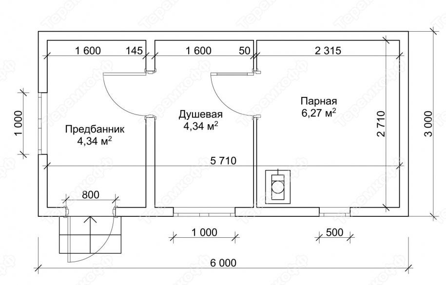 | Печь | - | "Волга"с баком на трубе 50л и дымоходом(сэндвич трубы и термозащита) |