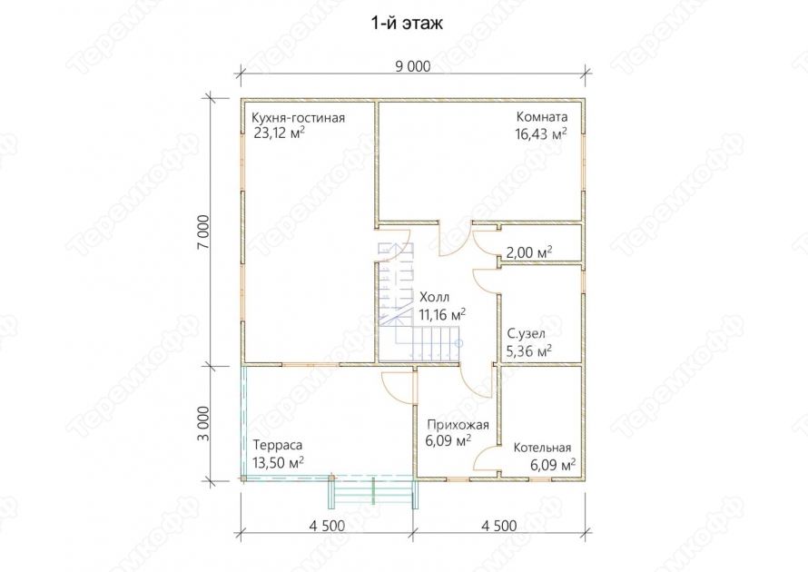 | Лестница | Одномаршевая, без перил | Двухмаршевая, с перилами и ограждением. | Двухмаршевая, с перилами и ограждением. | Двухмаршевая, с перилами и ограждением. |