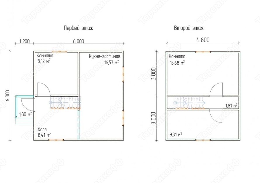 | Лестница | Одномаршевая, без перил | Двухмаршевая, с перилами и ограждением. | Двухмаршевая, с перилами и ограждением. | Двухмаршевая, с перилами и ограждением. |