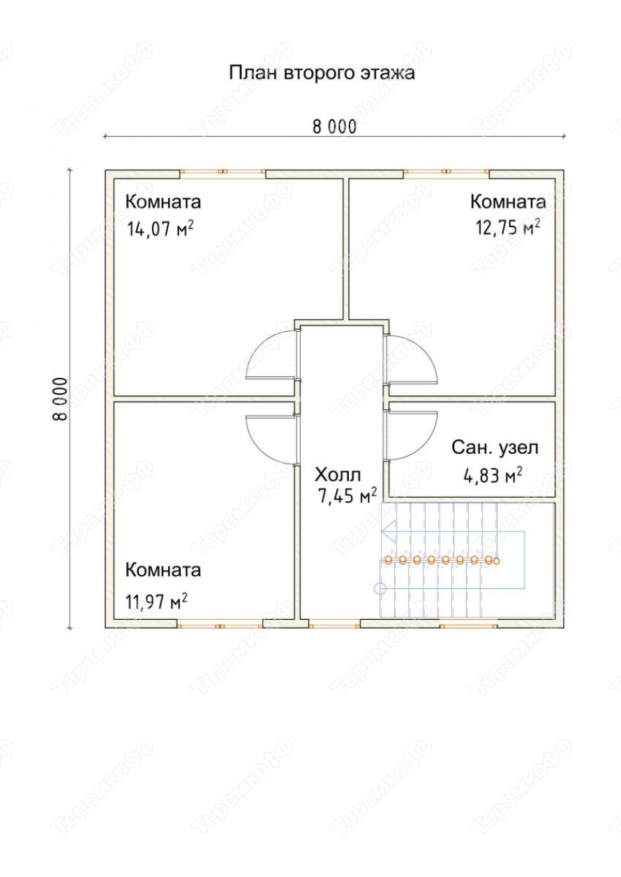 | Лестница | Одномаршевая, без перил | Двухмаршевая, с перилами и ограждением. | Двухмаршевая, с перилами и ограждением. | Двухмаршевая, с перилами и ограждением. |
