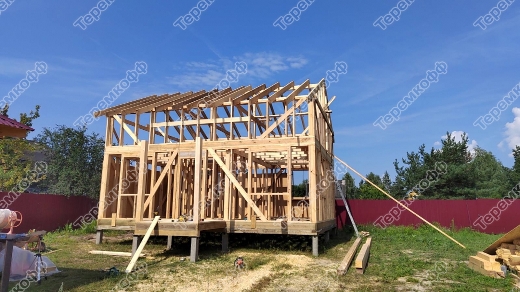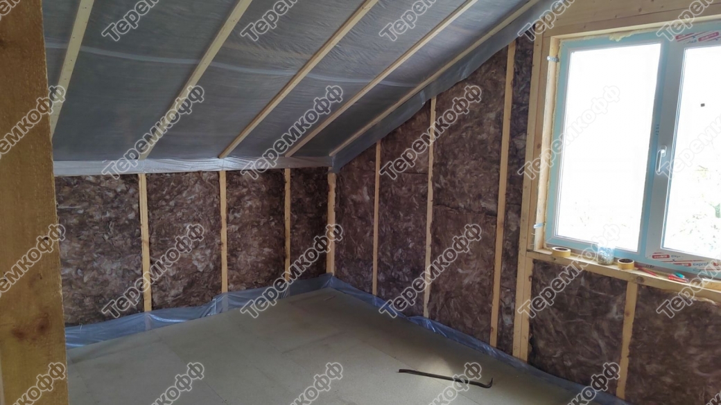 Каркасная конструкция снаружи обшита ветровлагозащитными плитами Белтермо топ 20.