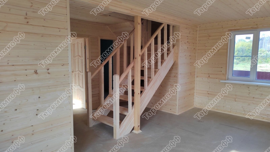 Внутри дома стены облицованы деревянной вагонкой 12 мм.