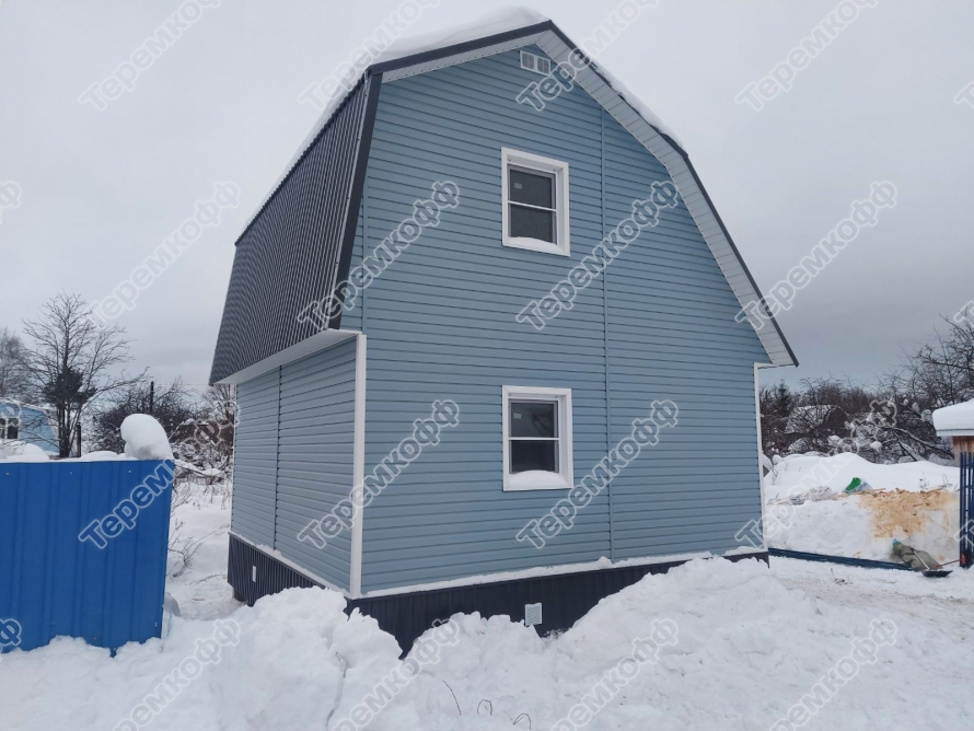 - Наружная поверхность стен по периметру дома покрыта виниловым сайдингом.