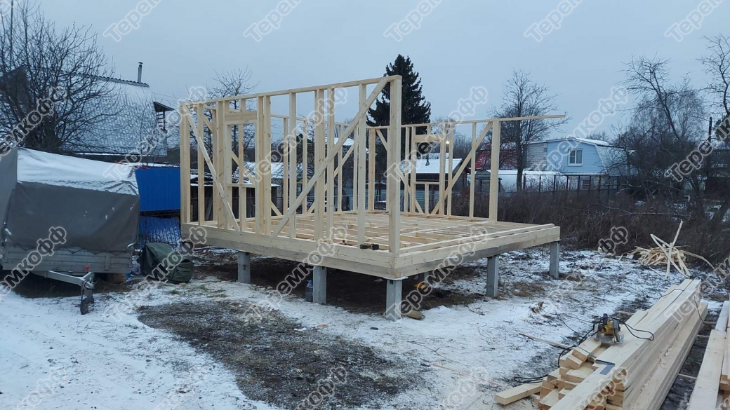 - Стены из деревянного каркаса, ширина стоек 100 мм.