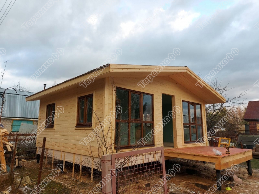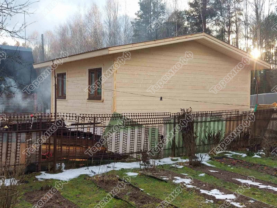 - Для наружной отделки установлена имитация бруса, размером 15 х 135 мм.
