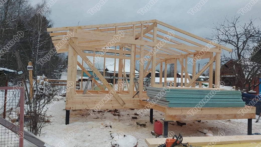 - Стены построены по каркасной технологии, ширина каркаса 100 мм.