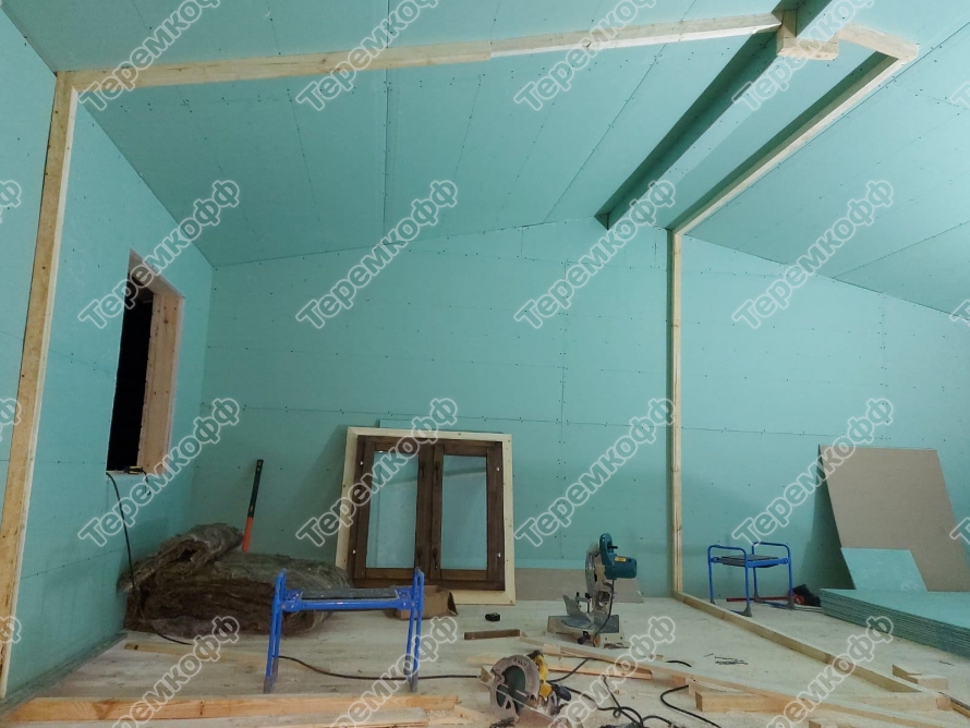 - Внутренние стены обшиты листами ГКЛВ толщиной 12 мм.
