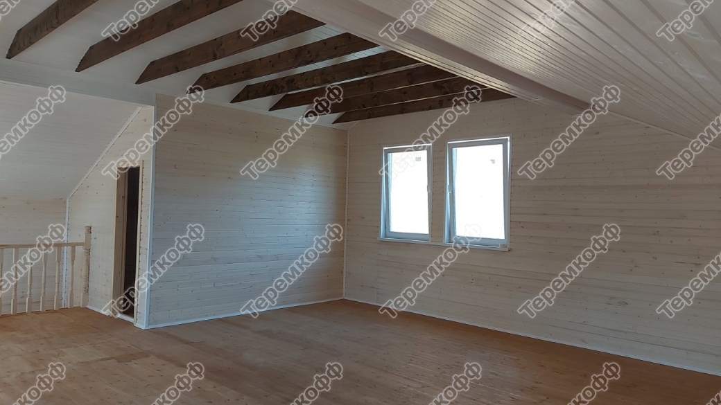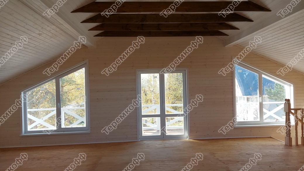 - Окна из ПВХ, стеклопакет в два стекла. На втором этаже в кровле мансардное окно «ВЕЛЮКС».