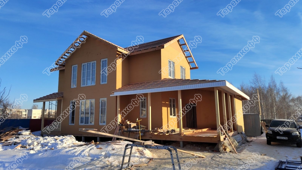 Завершили строительство каркасного двухэтажного дома размерами 16,25х9м, общей площадью 192,55 кв.м. Высота стен на первом и втором этажах 2800 мм.