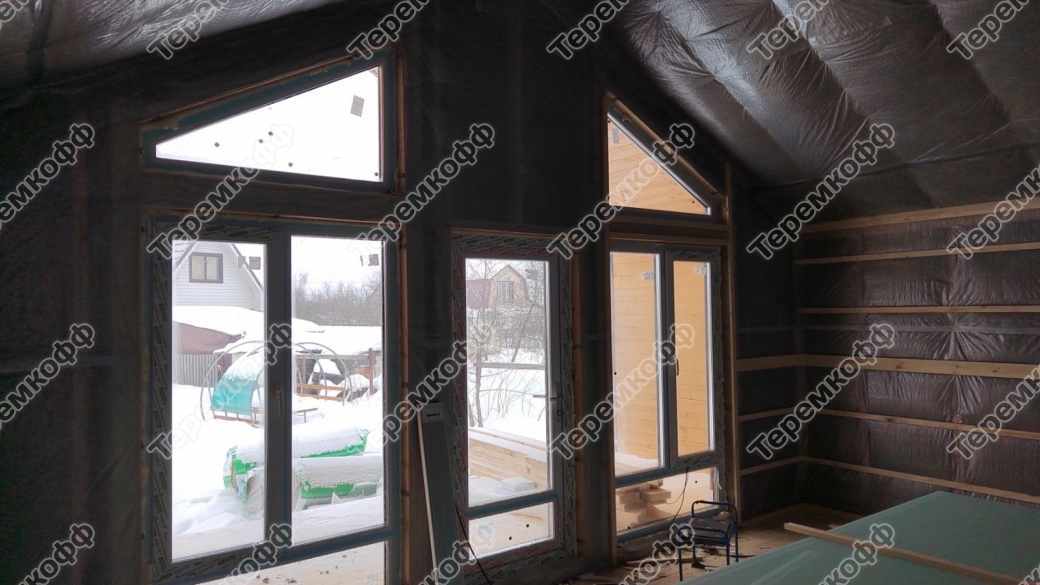 - Ветро влагоизоляция - наружная обшивка стен плитным материалом БЕЛПЛИТ ТОП 20 мм, плюс мембранные пленки.