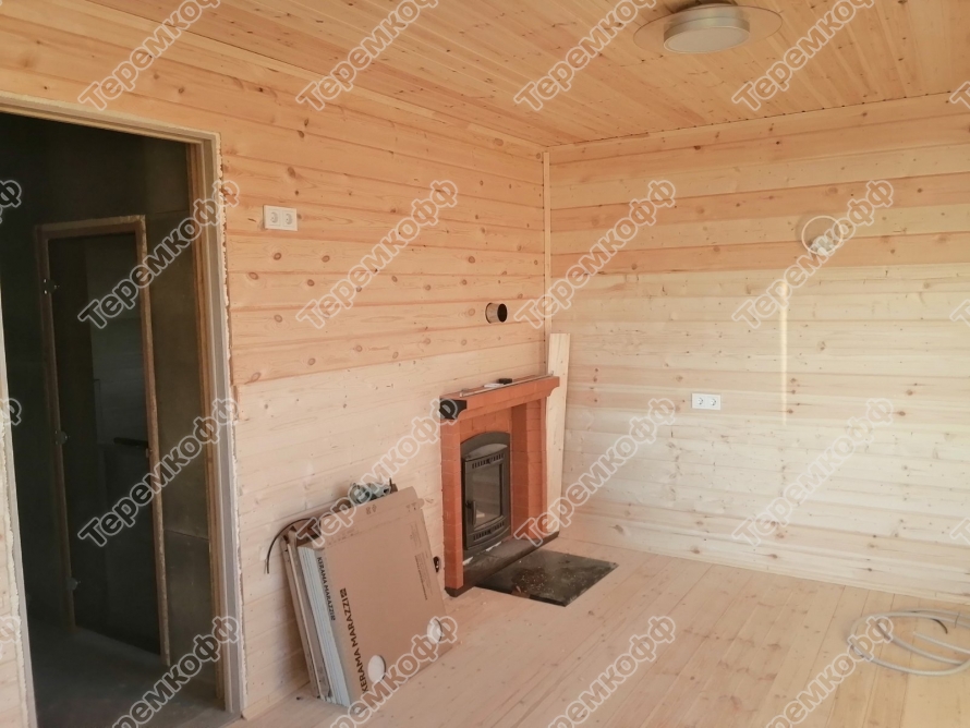 - Внутренняя отделка – комбинация материалов (имитация бруса, вагонка, ЦСП, ГСП).