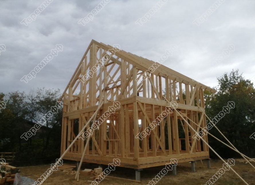 Завершен первый этап строительства дома «Грация», линейные размеры 6,5х9,5м. Строительная площадка находится в Нижнем Новгороде. Заказчик согласовал несколько изменений в типовом проекте: планировки и расположения крыльца. Толщина стен 150 мм, возведены на свайном железобетонном фундаменте 150х150х4000 мм.