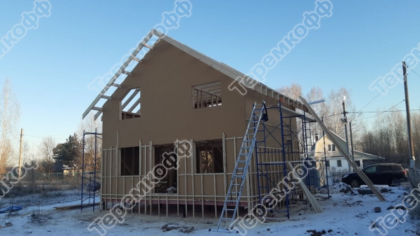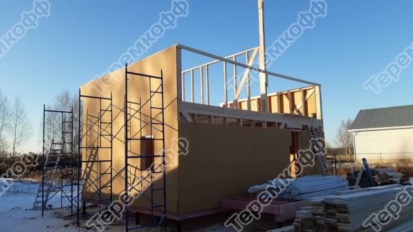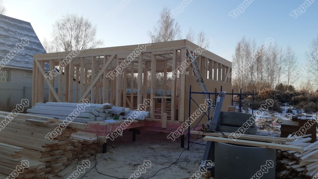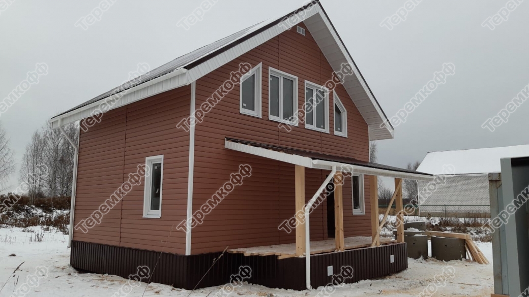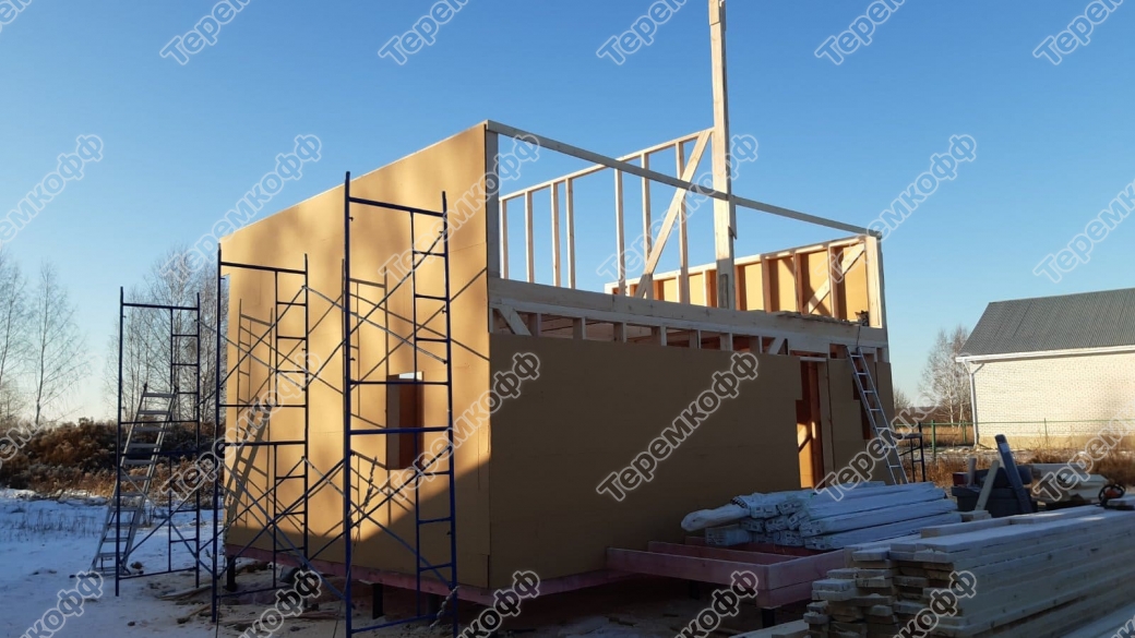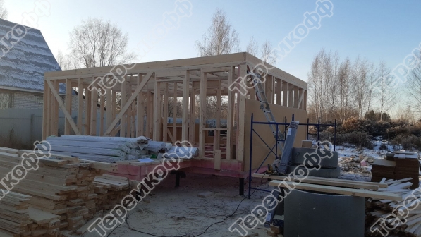 Завершен первый этап строительства дома по проекту «Грация» в Кстовском районе, поселок Новая деревня. Дом 8 на 8 метров построен на винтовом фундаменте 108х2500 мм, толщина стен 150мм.