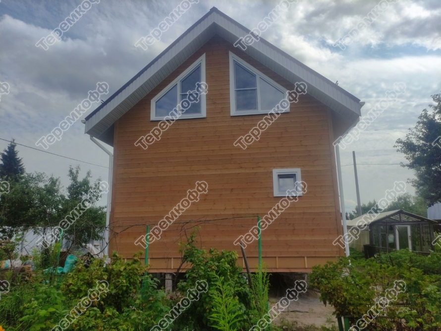 Наружная отделка стен сделана из имитации бруса. Толщина 15 мм, сорт АБ.
