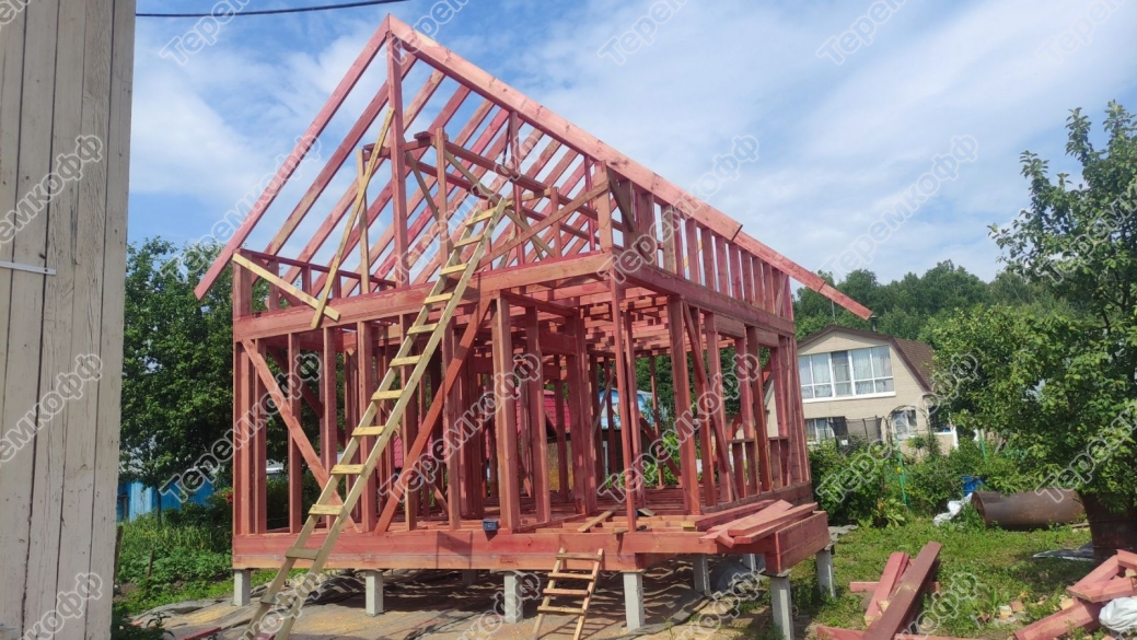 Биозащитным покрытием обработана вся деревянная конструкция каркаса.