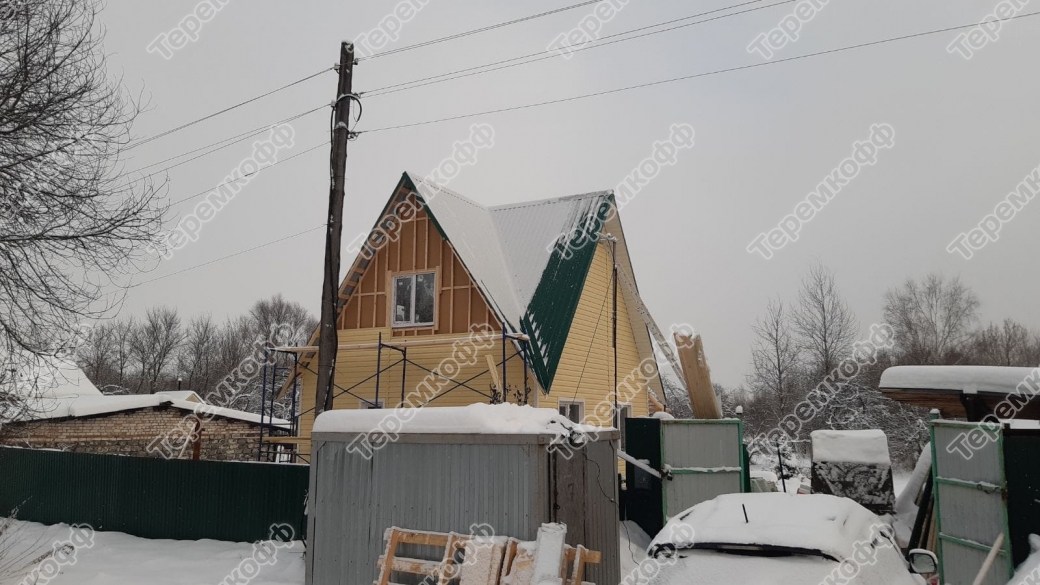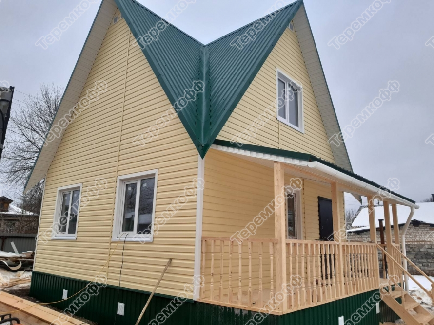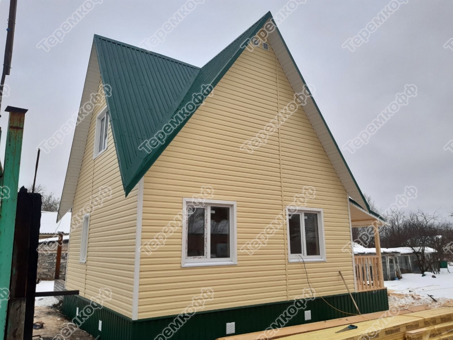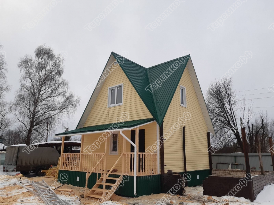 Закончено строительство дачного дома по проекту «Малахит» в д. Рассвет, Гороховецкого района. Это небольшой дом 6 на 7,5 метров с толщиной каркаса 100 мм, возведен свайном винтовом фундаменте 108х2500мм. Другие особенности проекта: