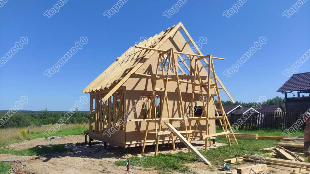 - Поверхности стен изнутри обтянуты пароизоляционные мембранами.