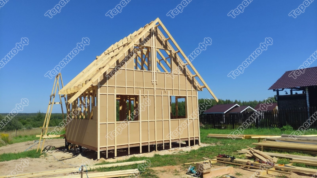 Завершено строительство загородного дома по проекту “Бриз”. Место строительства Нижегородская область, Чкаловский район, д. Колосиха. В основе проектирования и строительства дома выбрана каркасная технология. Габариты каркаса между крайними осями 7,5м х 6 м. У дома общая площадь составила 58,56 кв. м, она включает площадь 1-го и мансардного этажа. Ширина стоек равны толщине каркаса 100 мм. Общая толщина стен с отделкой с двух сторон 223 мм.