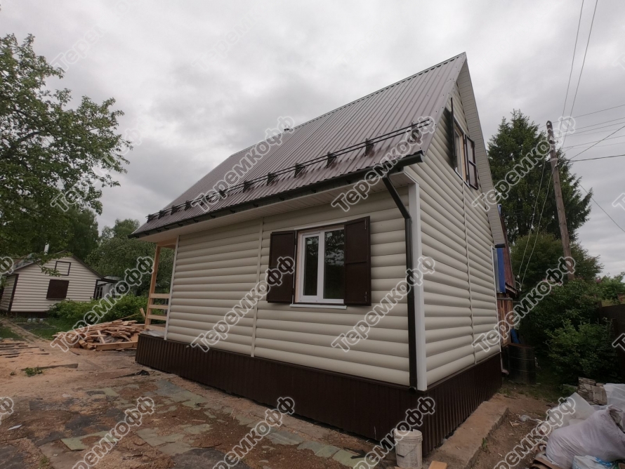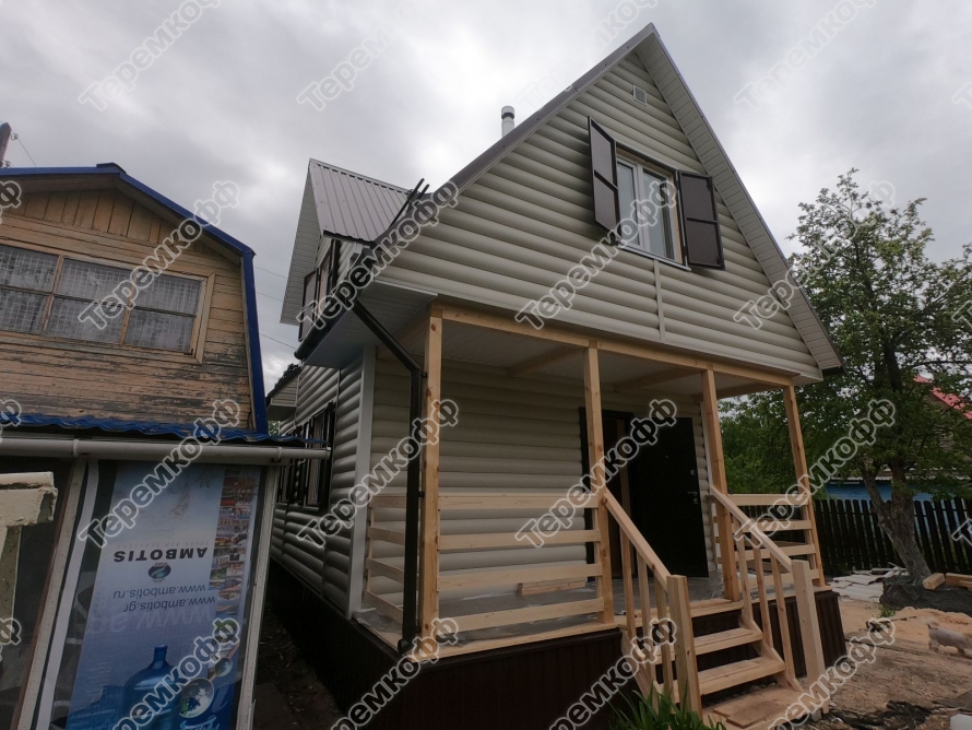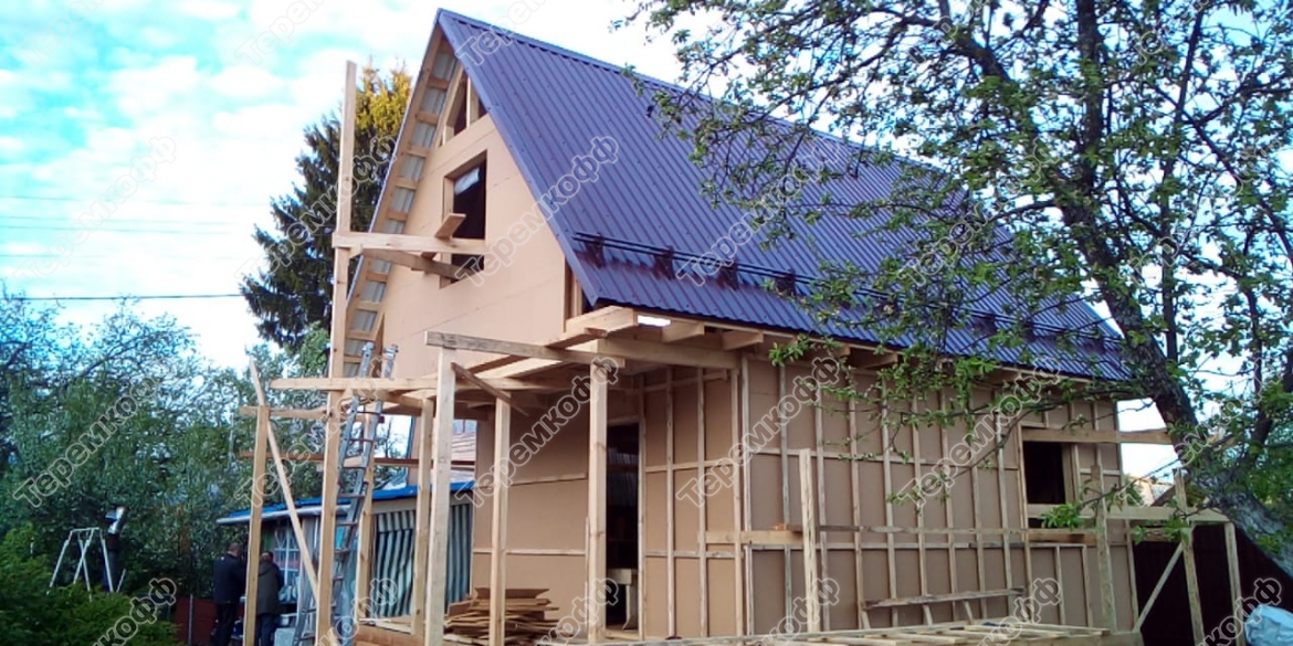 Закончили второй этап строительства дома в пос. Кантаурово по проекту Люблино. Это каркасный дом с мансардой. Размер в осях 5х7,5 метров, общая площадь 62 кв.м. Стоимость строительства от 220600 руб. В доме установлено печное отопление. На первом этаже одна комната и кухня, на втором этаже две жилые комнаты. Строительство было завершено за 17 дней.