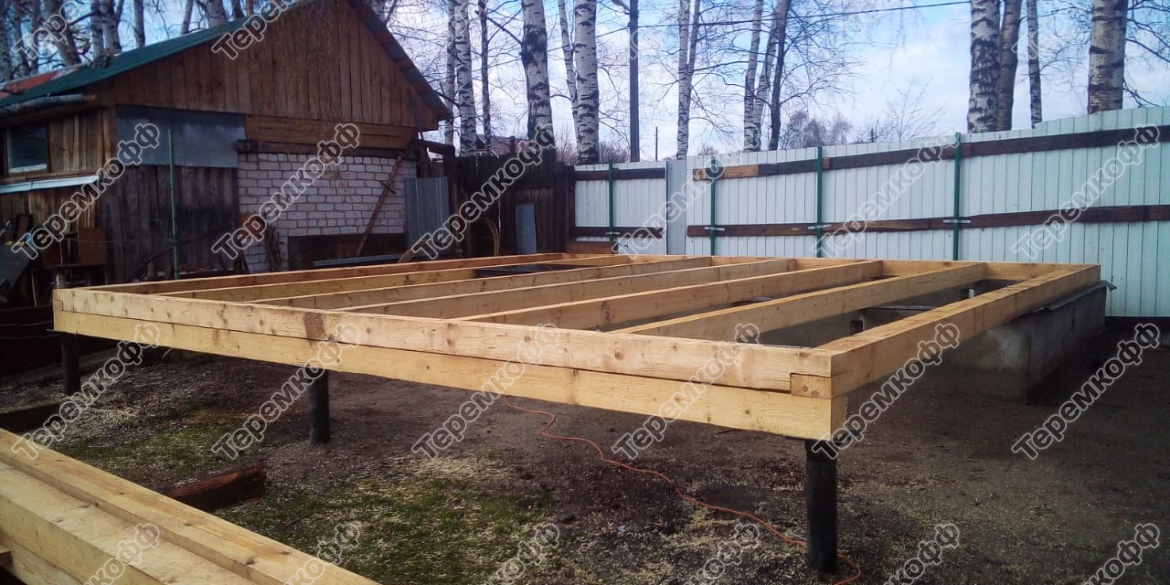 В этом случае заказчик частично сделал фундамент и приобрел печку. Мы изготовили фундамент под террасой и печкой.