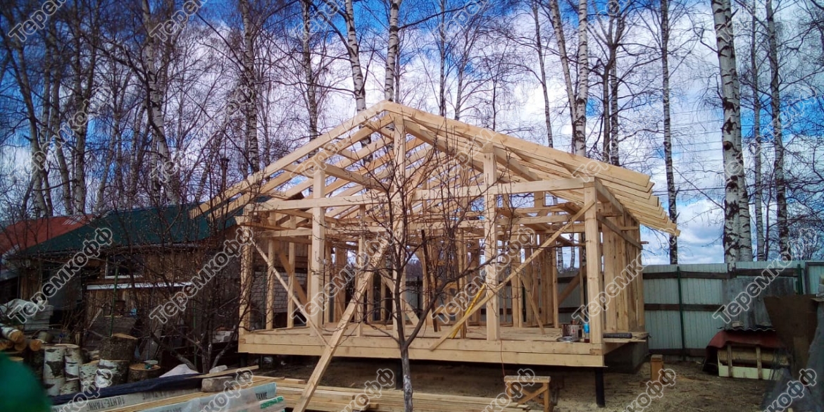 Компания Теремкофф завершила строительство каркасной бани 6 на 6 метров. Заказчик решил не использовать типовой проект, поэтому был разработан индивидуальный.