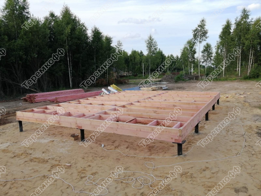 - Фундамент - винтовые сваи с обвязкой брусом 150х150мм.
