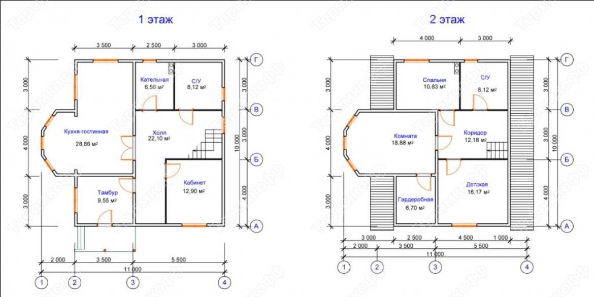 Размеры по фундаменту: