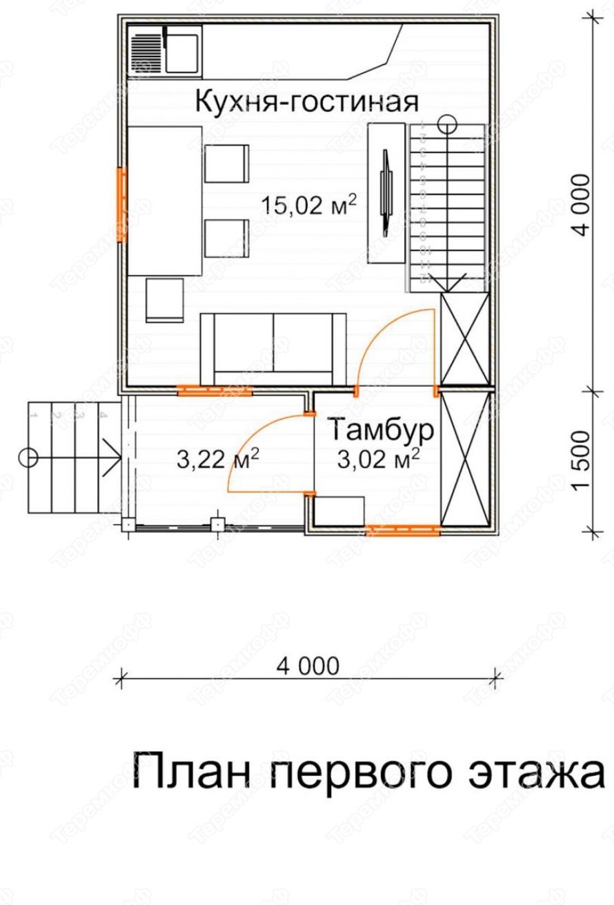 | Лестница | Одномаршевая, без перил | Одномаршевая, без перил | Одномаршевая, без перил | Одномаршевая, с перилами и ограждением. |