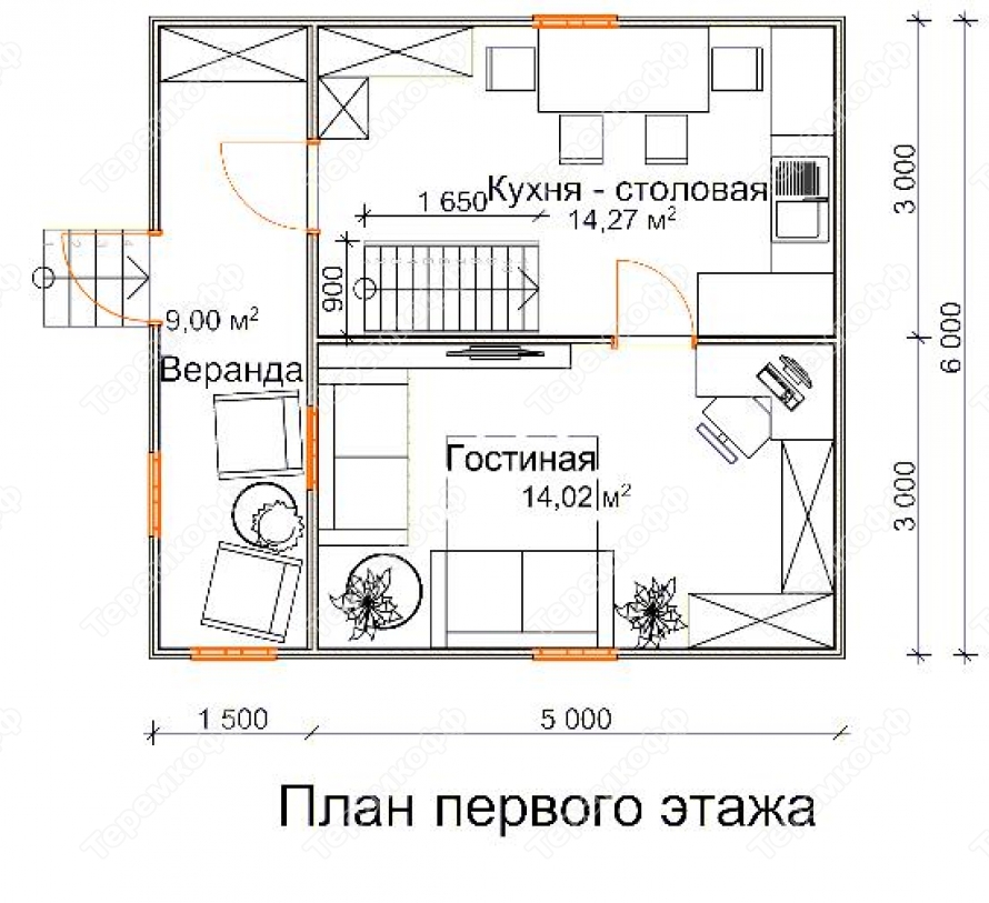 | Лестница | Одномаршевая, без перил | Одномаршевая, без перил | Одномаршевая, без перил | Одномаршевая, с перилами и ограждением. |