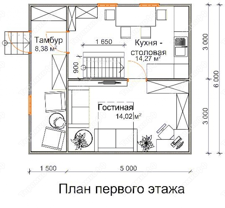 | Лестница | Одномаршевая, без перил | Одномаршевая, без перил | Одномаршевая, без перил | Одномаршевая, с перилами и ограждением. |