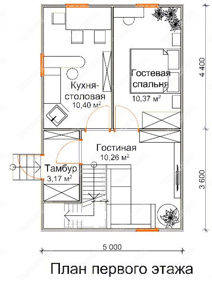 | Лестница | Одномаршевая, без перил | Двухмаршевая, с перилами и ограждением. | Двухмаршевая, с перилами и ограждением. | Двухмаршевая, с перилами и ограждением. |