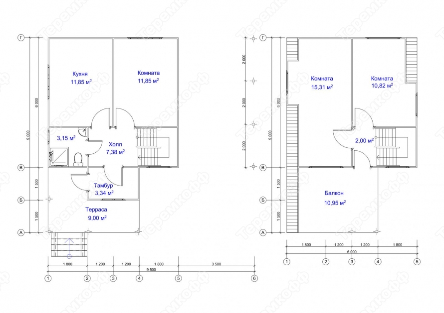 | Высота потолка | 1-й этаж - 2500 мм, 2-й этаж 2300мм | 1-й этаж - 2400 мм, 2-й этаж 2200мм | 1-й этаж - 2400 мм, 2-й этаж 2200мм | 1-й этаж - 2400 мм, 2-й этаж 2200мм |