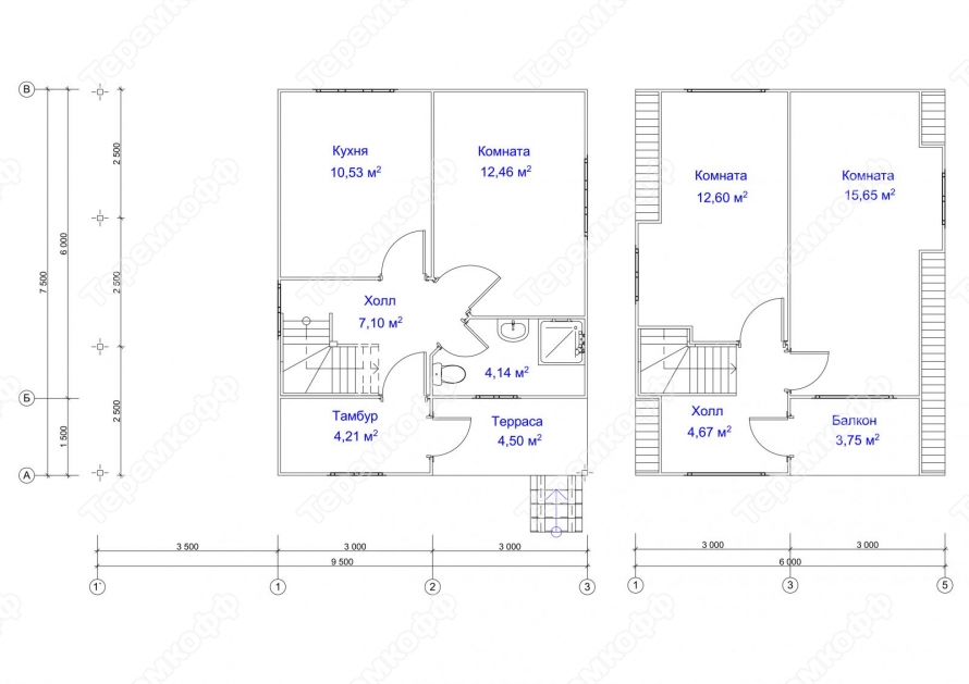| Высота потолка | 1-й этаж - 2500 мм, 2-й этаж 2300мм | 1-й этаж - 2400 мм, 2-й этаж 2200мм | 1-й этаж - 2400 мм, 2-й этаж 2200мм | 1-й этаж - 2400 мм, 2-й этаж 2200мм |