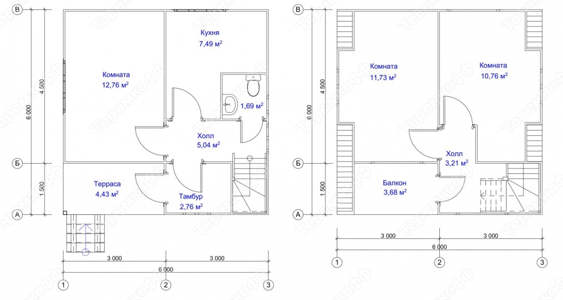 | Лестница | Одномаршевая, без перил | Двухмаршевая, с перилами и ограждением. | Двухмаршевая, с перилами и ограждением. | Двухмаршевая, с перилами и ограждением. |