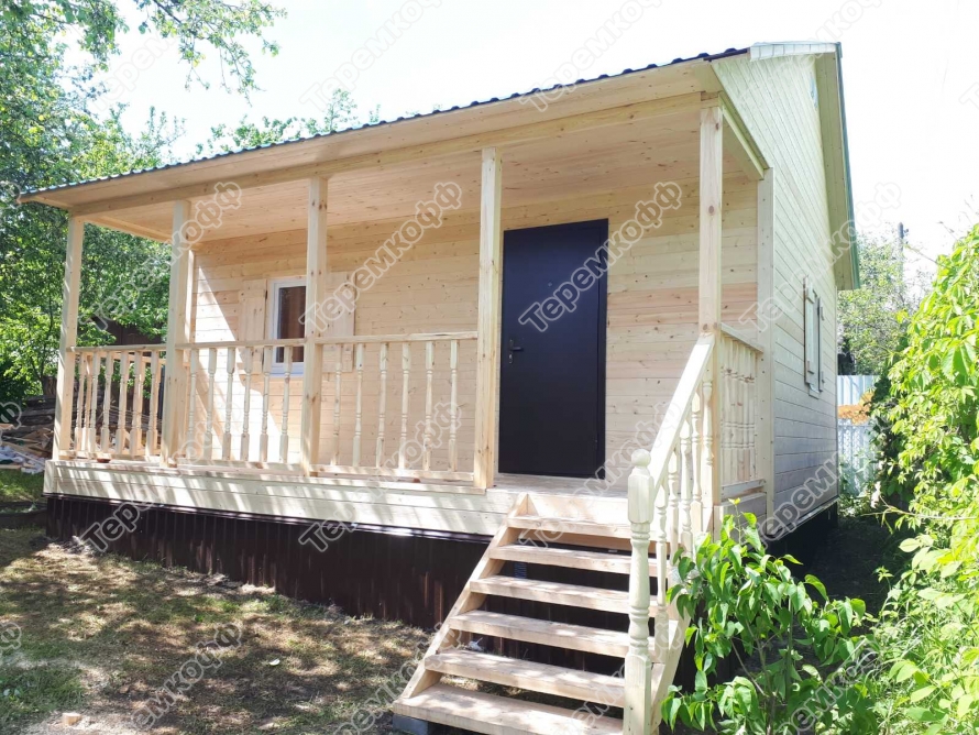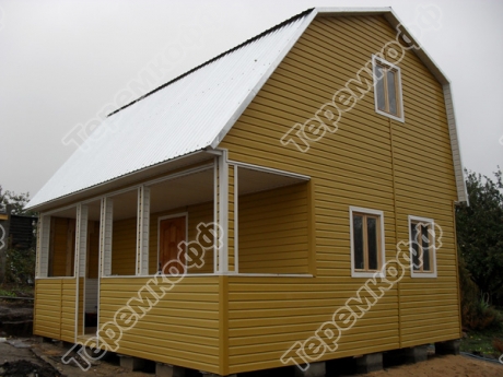 Закончили строительство очередного садового домика по проекту 30.2 в г. Нижний Новгород, ст. им. Тимирязева. Планировка включает спальню и большую кухню-гостиную. Перед входом терраса 8 кв.м. Линейные размеры - 6х6,5м, отлично подойдет для размещения даже на маленьком садовом участке.