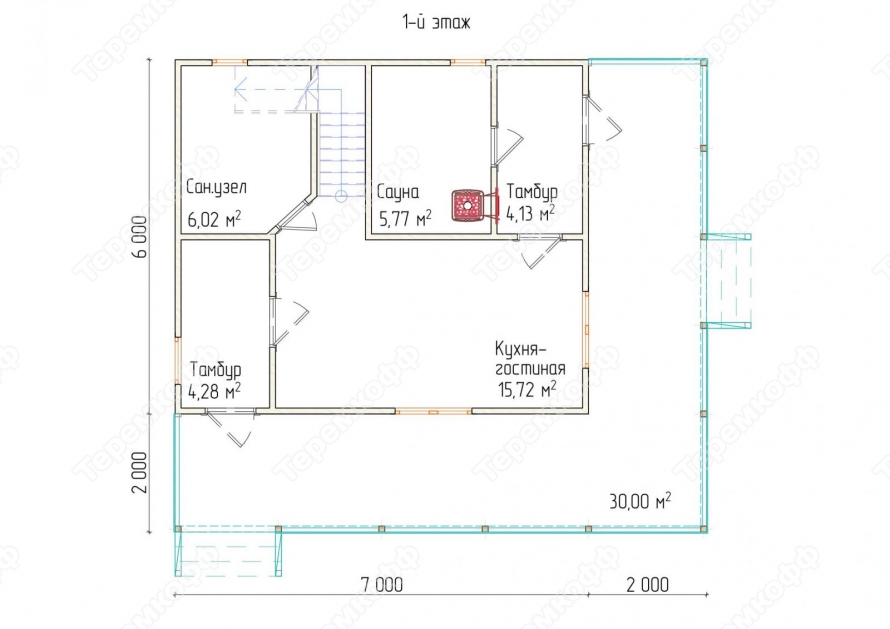 | Лестница | Одномаршевая, без перил | Двухмаршевая, с перилами и ограждением. | Двухмаршевая, с перилами и ограждением. | Двухмаршевая, с перилами и ограждением. |