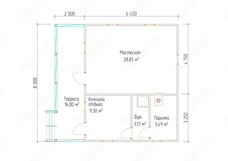 | Наружная отделка | Имитация бруса АБ, 15 мм (сосна) | Имитация бруса АБ, 15 мм (сосна) |