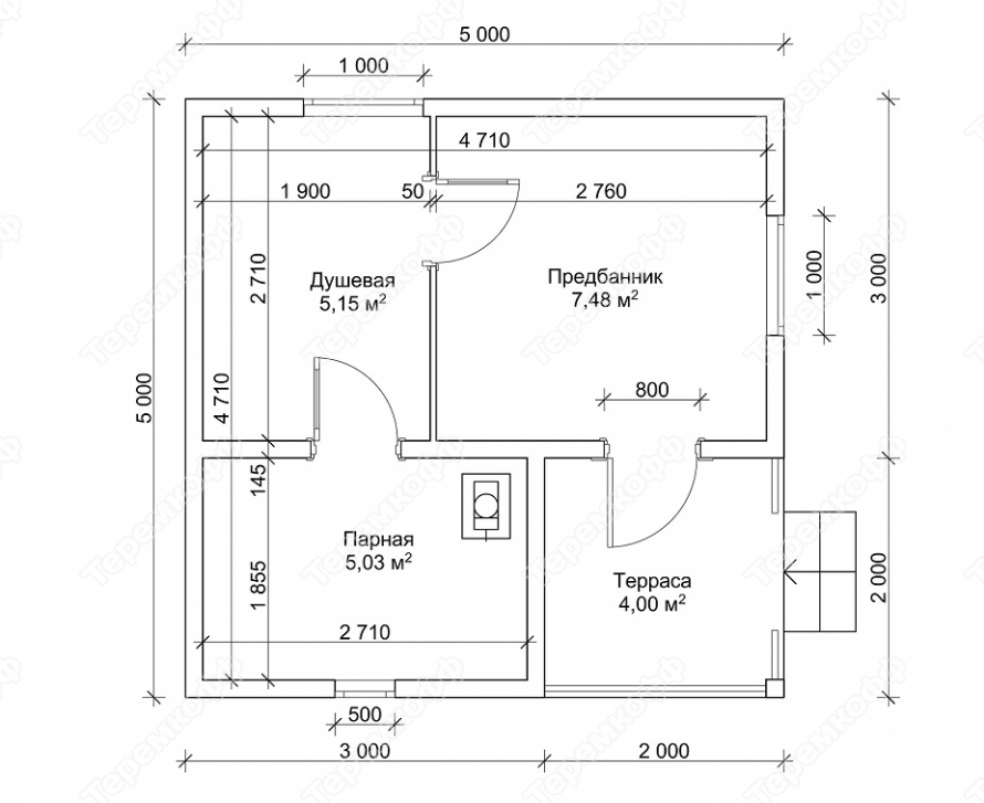 | Входная дверь | - | Банная – 1 шт. |