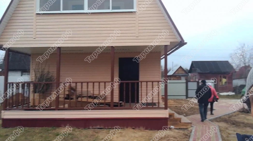 - фронтоны и потолки на террасе зашиты имитацией бруса 16 мм;