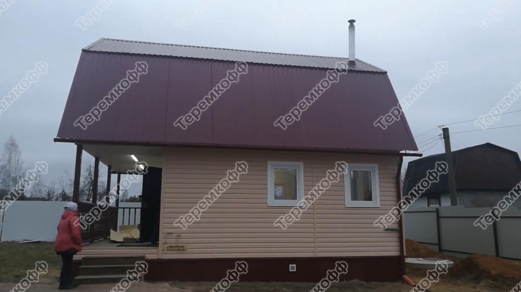 Также, одновременно со строительством дачи была построена баня из профилированного бруса 4х4 метра, с террасой. Заказчики самостоятельно окрасили баню. Установлена печь Волга. Характеристики построенной бани: