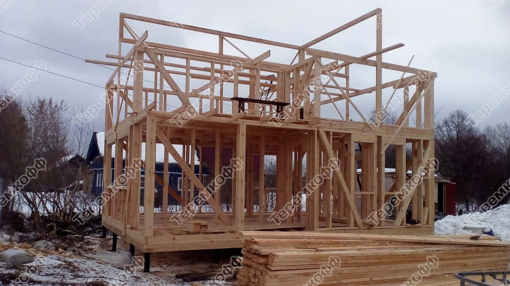 Для строительства был выбран проект каркасного дома Перламутр.