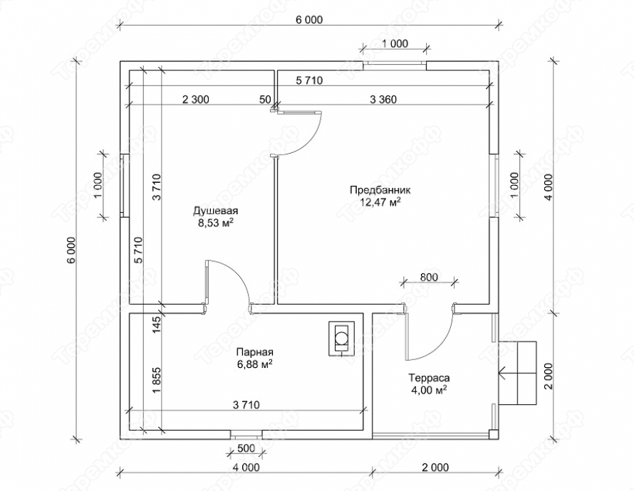 | Входная дверь | - | Банная – 1 шт. |