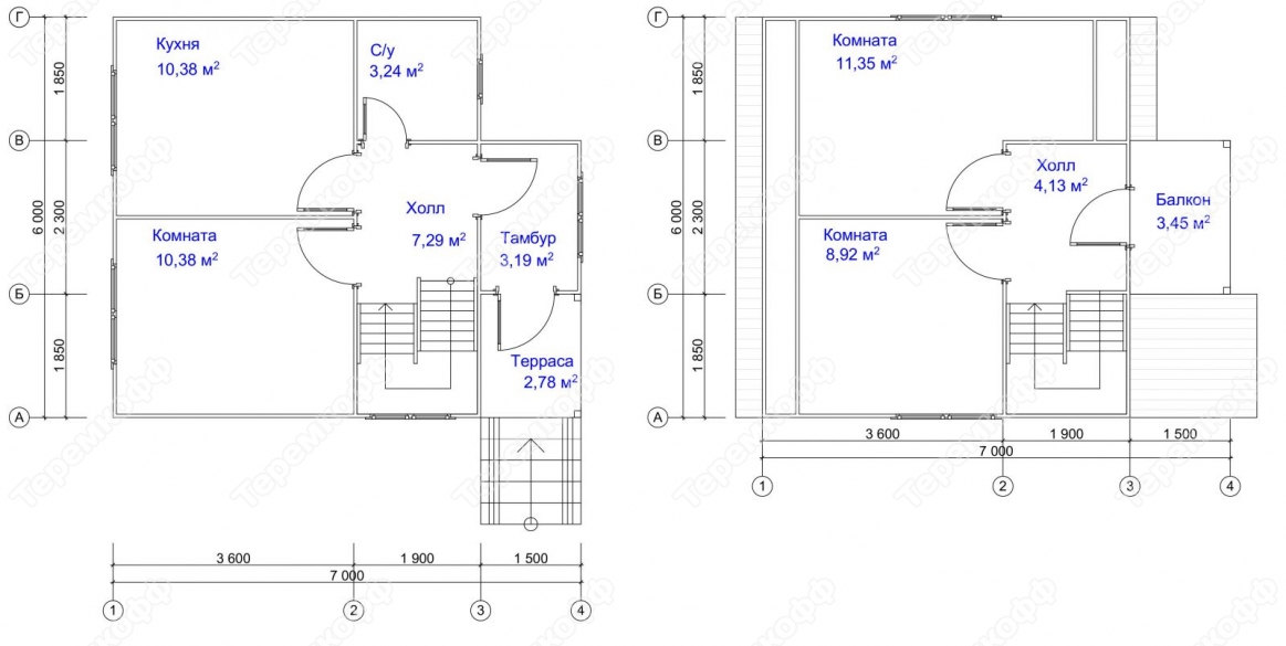 | Высота потолка | 1-й этаж - 2500 мм, 2-й этаж 2300мм | 1-й этаж - 2400 мм, 2-й этаж 2200мм | 1-й этаж - 2400 мм, 2-й этаж 2200мм | 1-й этаж - 2400 мм, 2-й этаж 2200мм |
